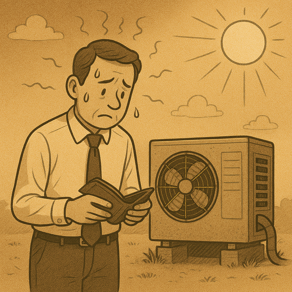 業務の都合上、ファン付き作業着などの暑さ対策は使えないため、エアコンを使うしかないが、効きが悪い・・・・